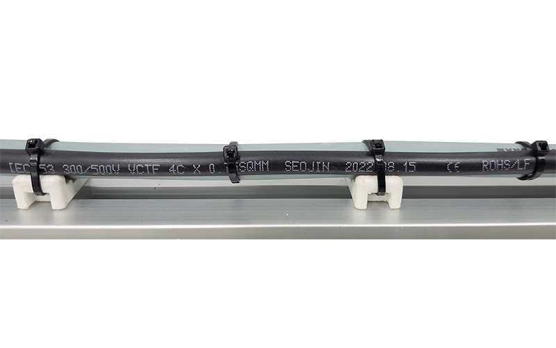 케이블 타이를 이용하여 배선 가이드바와 함께 체결